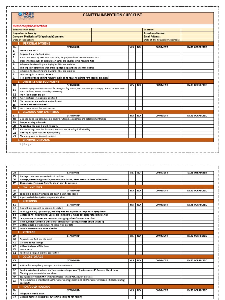 Kitchens and canteens safety inspection process Canteen Food Checklist Your rating will be based on what is seen on the day of inspection. Browse the public library of over 100,000 free editable checklists for all industries. View and download canteen audit checklist for free. This checklist covers the key things that will be checked during a food safety inspection. Inspection of kitchen and dining premises. Browse the public library. Canteen Food Checklist.